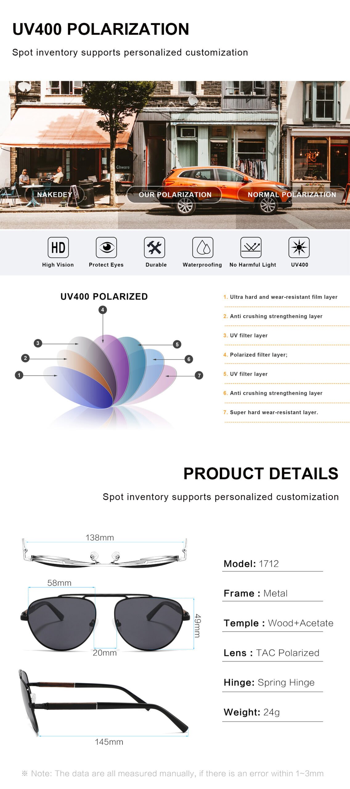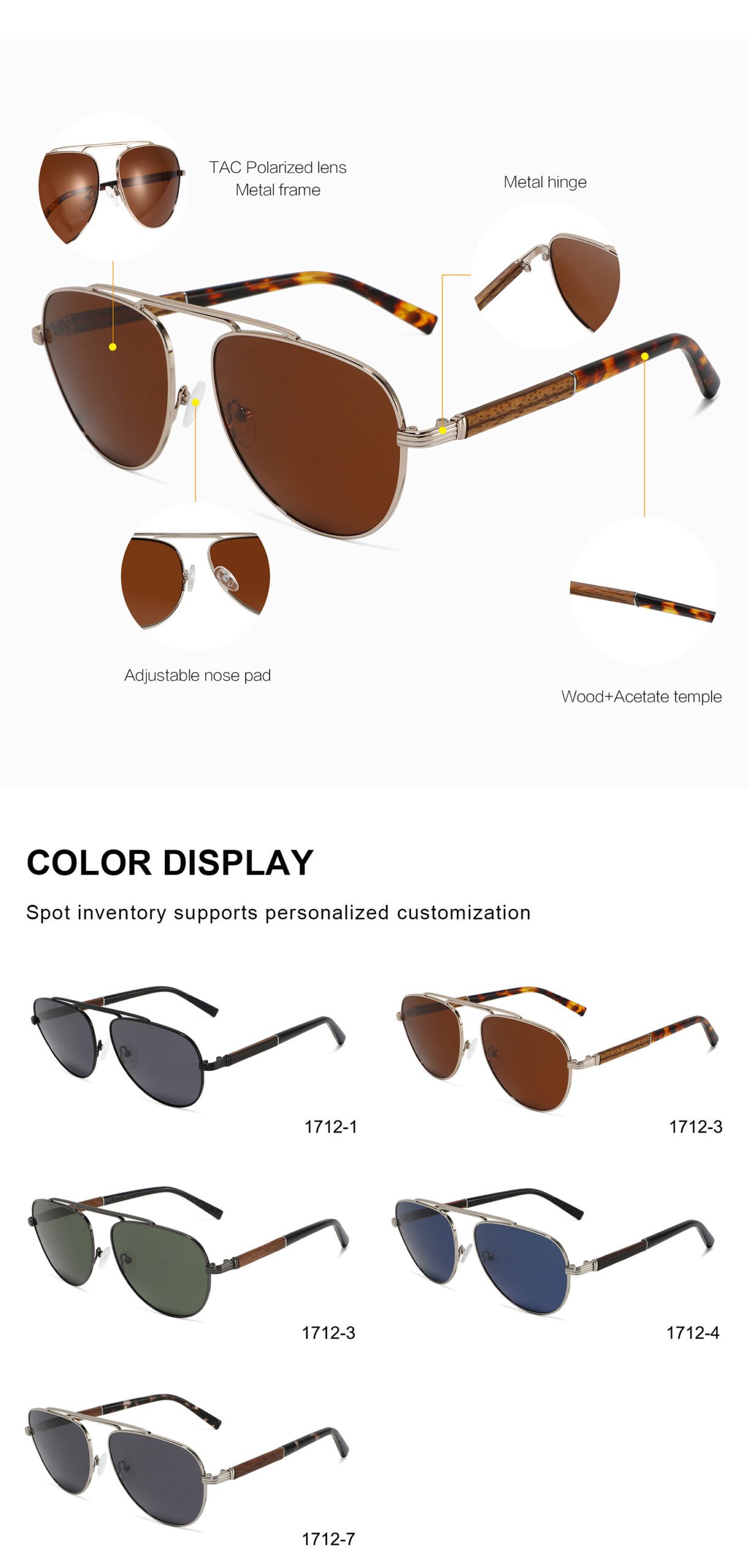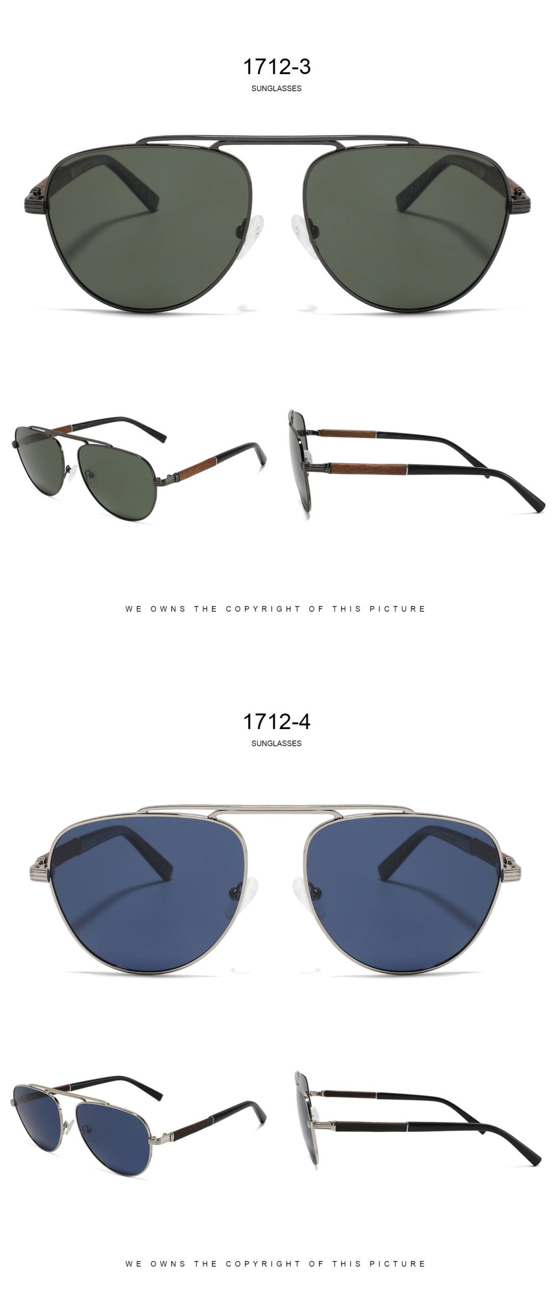 1 review for Classical Aviator Metal Sunglasses Wooden Temple Glasses