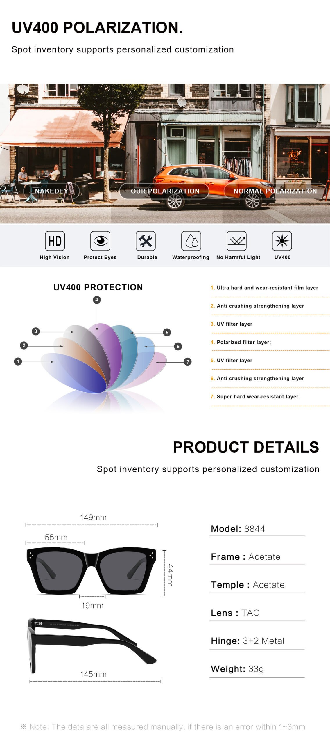 Experience unparalleled comfort and protection with our large frame acetate sunglasses, designed specifically for men and women. These stylish sunglasses feature advanced polarized lenses that reduce glare and enhance visual clarity, making them perfect for driving or outdoor activities. The durable acetate frame offers a lightweight feel while ensuring a secure fit. Whether you’re cruising down the highway or enjoying a sunny day at the beach, look sharp and stay protected with these essential eye-wear staples.